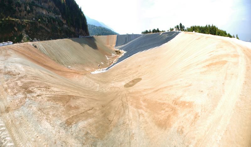 Yapay Göller Sulama göletleri, sıvı atık depolama ve çökertme havuzları, su rezervuarları, dekoratif bahçe havuzları gibi alanlar için geniş panel jeomembranlar kullanılır. Yaklaşık 1000m2 tek parça halinde jeomembran üretilmektedir. Büyük boyutlu göletler için 1,5mm küçük boyutlu süs havuzları için 1mm ve 1,2mm kalınlıktaki jeomembran kullanımı önerilmektedir.Uygulama Yöntemi Projeye uygun olarak hazırlanan geniş membran panelleri kenarları 4 cm bini olacak şekilde yan yana serilir. Eğer zemin otomatik kaynak makinesinin düz hareket etmesine engel olursa kaynak yapılacak yerlerin altına geçici olarak ince gibi sert düz malzeme serilmelidir Biniler sıcak hava ile termik kaynak yapılır. Termik kaynak esnasında uygulama talimatlarına uyulmalıdır. Zemin üzerinde membrana zarar verebilecek sivri taş, demir parçası vs. olmamalıdır. Gölet zemini sadece toprak hafriyatından olabileceği gibi beton, betonarme veya kerpiçten oluşabilir. Zemin tesviyesi yapıldıktan sonra hazırlanan zemine min.250kg/m2 geotekstil serilir. Sonra üzerine jeomembran serilerek uygulama tamamlanır.
